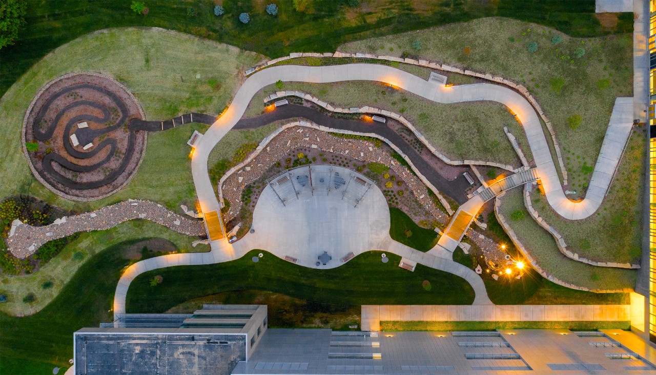LEO A DALY: The LEO A DALY-designed Omaha VA Ambulatory Care Center creates a healing environment that integrates places of respite, views of nature and maximizes natural daylight. Sustainable features include circadian lighting, desiccant wheel technology to control temperature and humidity in the ORs, and healing gardens. (© 2020 LEO A DALY)