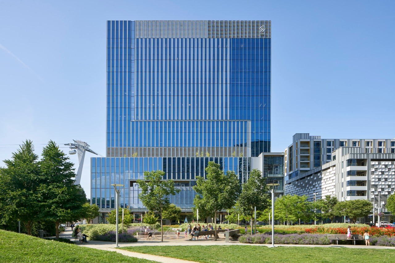 ZGF: The LEED Gold Certified OHSU Center for Health & Healing Building 2 sets high standards for sustainability in health care. The use of chilled beams is a first for any health care project in Oregon, requirement advancements in building codes and paving the way for future health care projects to employ the same cost-saving technology. Designed by ZGF, the facility taps into efficiencies via shared programming with the adjacent Rood Family Pavilion, with both facilities utilizing a centralized energy plant to reduce waste and functioning in concert with an existing bioreactor that provides access to reclaimed water (© 2018 Bruce Damonte)